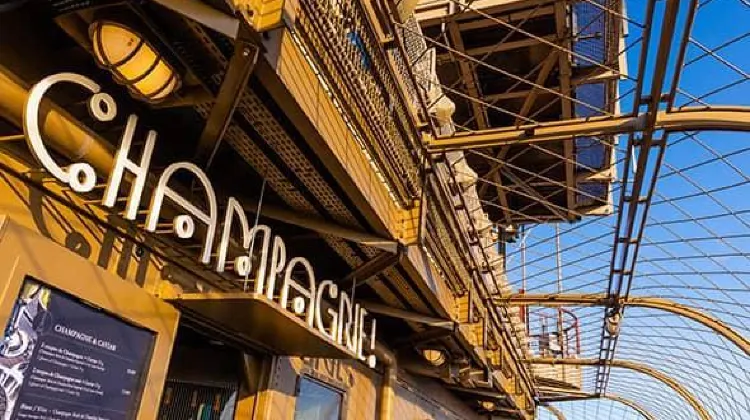 The Champagne Bar terletak di tingkat atas Menara Eiffel, di mana anda boleh menikmati pemandangan Paris yang tiada tandingan sambil menghirup segelas champagne Perancis.