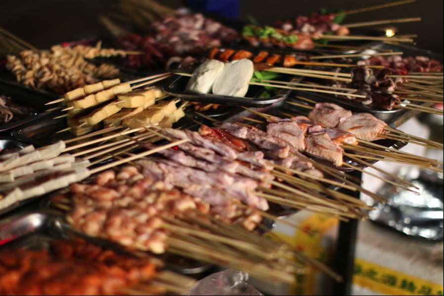 It was close to midnight in Dapuqiao when I found myself at a smoky roadside grill. A row of skewers sizzled over red-hot coals, sending up clouds of cumin-scented steam. I grabbed lamb, chicken wings, mushrooms, and tofu—it was a Malaysian lok-lok dream, reimagined with a northern Chinese twist.