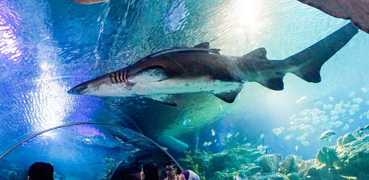 - The Oceanarium: This is the main attraction of Aquaria KLCC. It is a 90-meter long underwater tunnel that gives you a panoramic view of the ocean. You can see green sea turtles, sand tiger sharks, giant groupers, manta rays, and more.