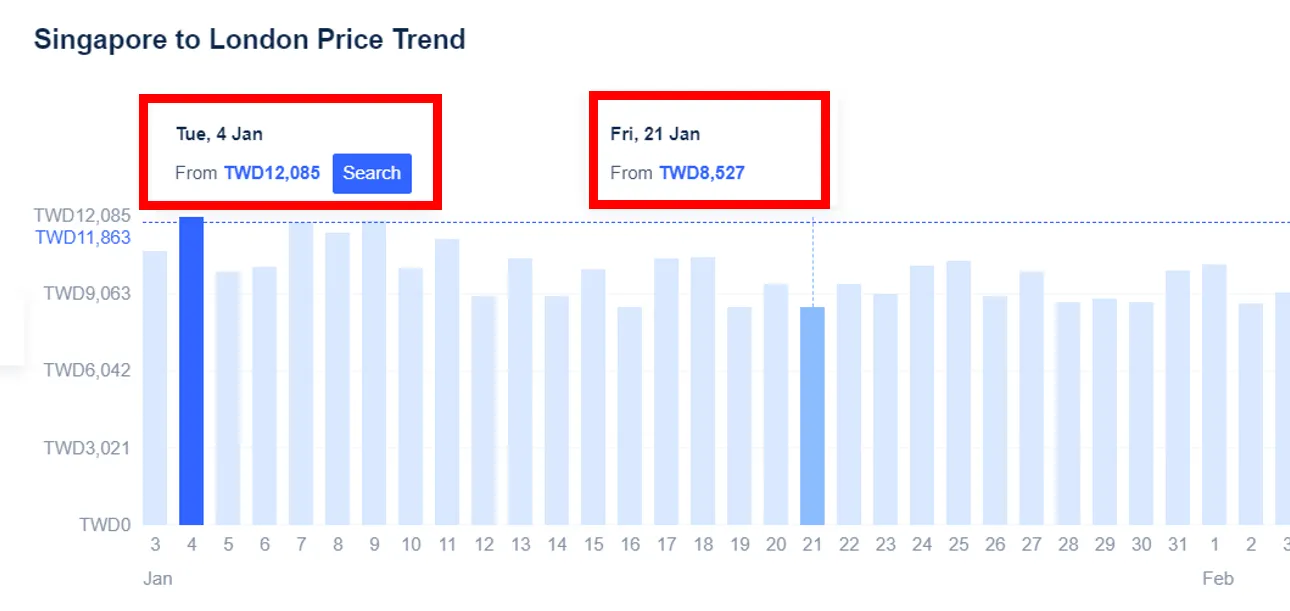 It is recommended you book one-way flight ticket rather than round trip so you have the flexbility to opt for flight tickets during the weeks where flight ticket prices are lower. Of course, this is subjected to how much flexbility you have in adjusting your travel plans. If you can only travel between certain dates, this route is not suitable for you.