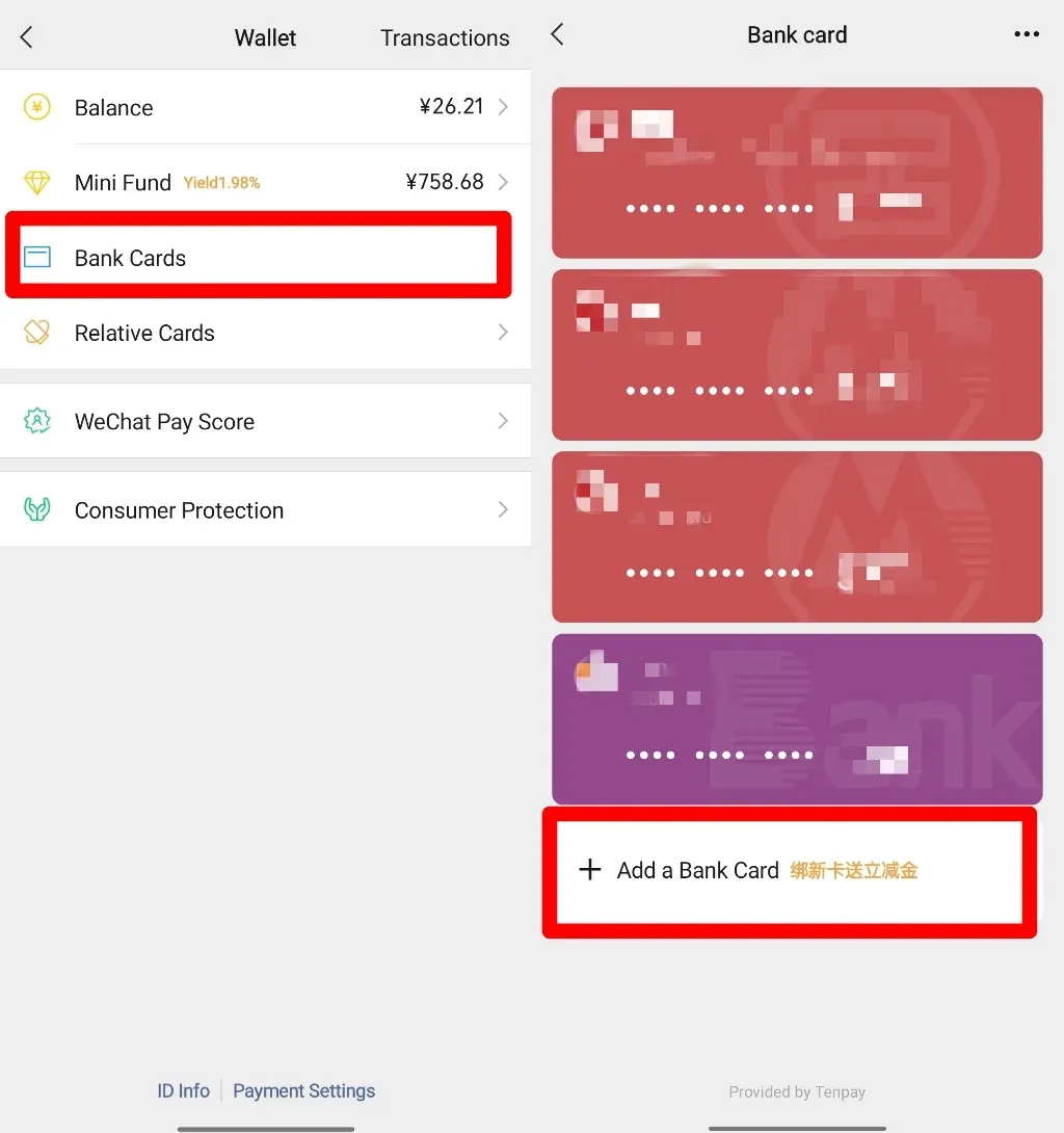 3. Link Your Bank Card: Alipay accepts international credit cards, including Visa, Mastercard, JCB, Diners Club, and Discover.