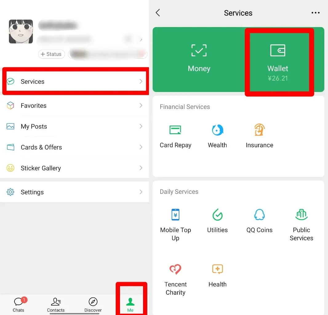 3. Access Wallet: Navigate to the "Me" section and select "Wallet."