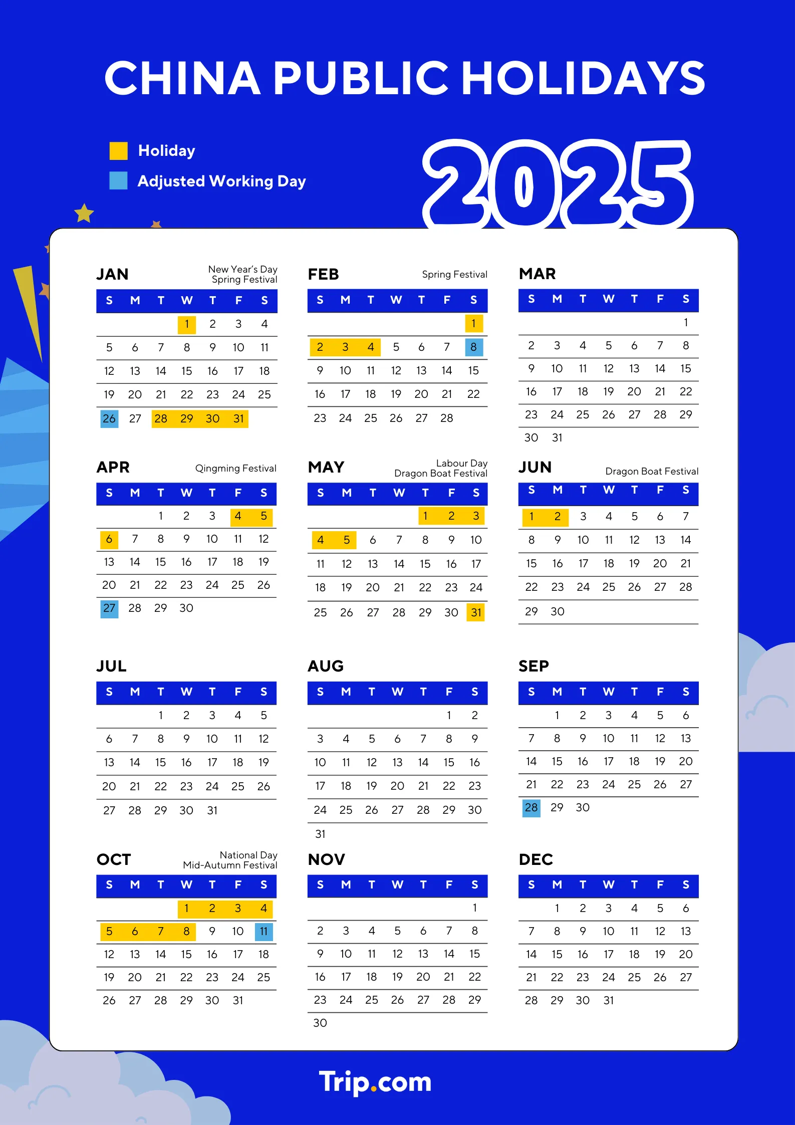 Planning a trip to China in 2025? Knowing the public holiday schedule can help you make the most of our China Public Holidays 2025 guide, which provides a complete list of holiday dates, cultural significance, and travel tips. Whether you want to join local festivities or avoid peak travel seasons, this guide ensures a smooth trip to China.