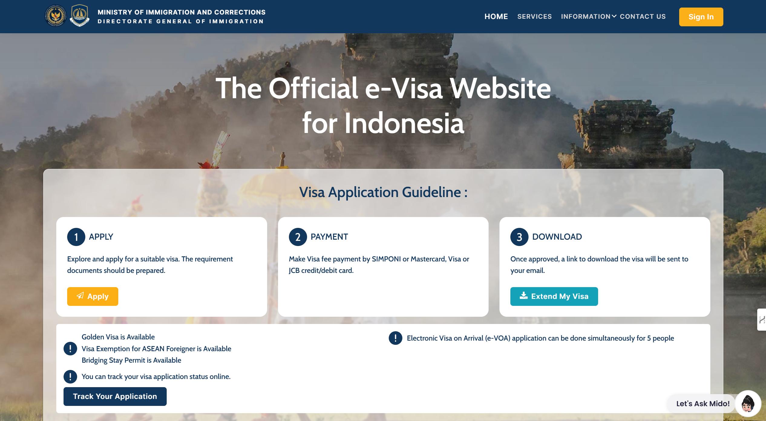 - Visit evisa.imigrasi.go.id