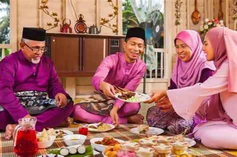 Marks the end of Ramadan, celebrated with open houses, kuih raya, and balik kampung.