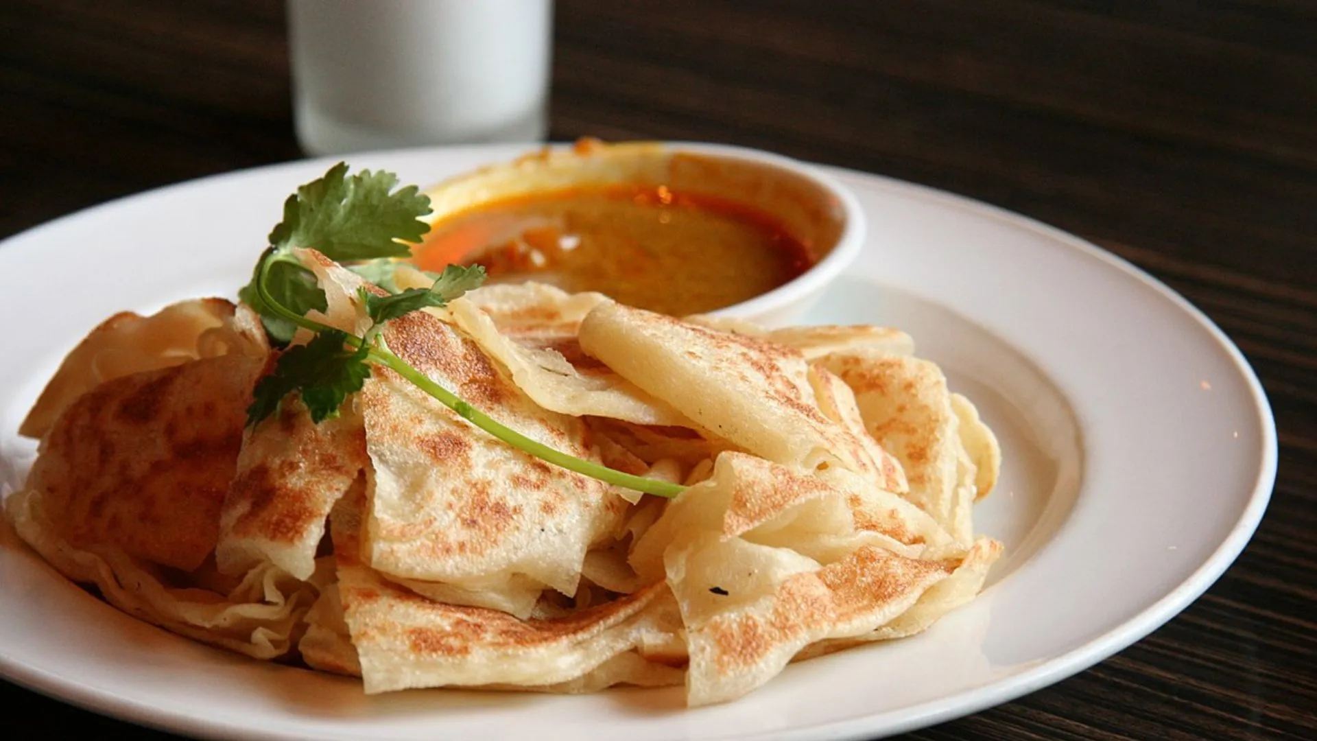 An Indian-influenced flatbread, crisp outside and soft inside, served with curry.