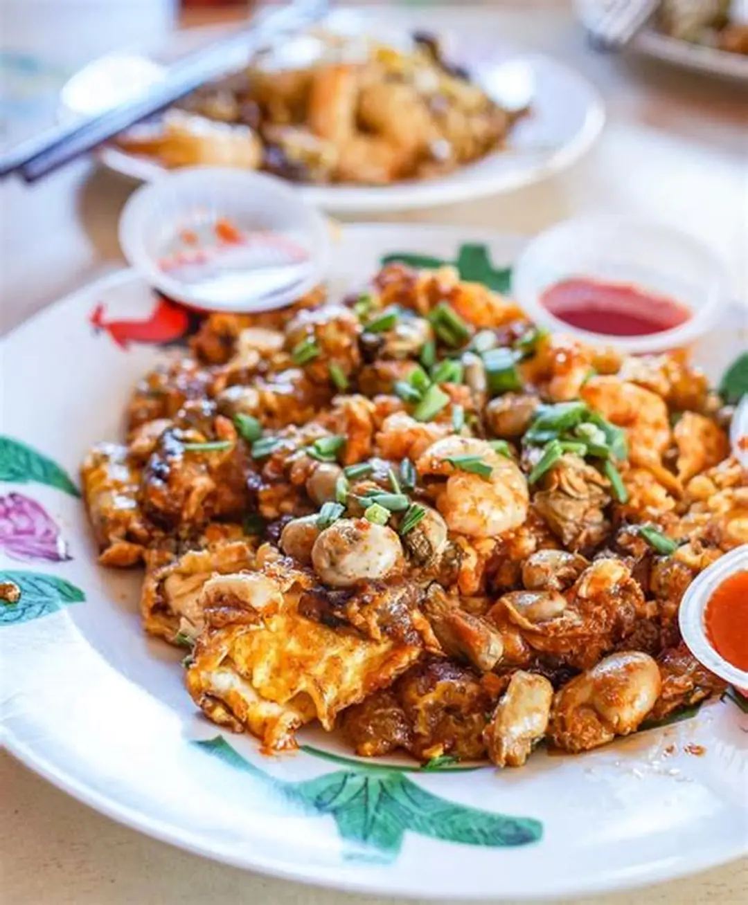 A Hokkien oyster omelette—crispy, chewy, and loaded with fresh oysters.