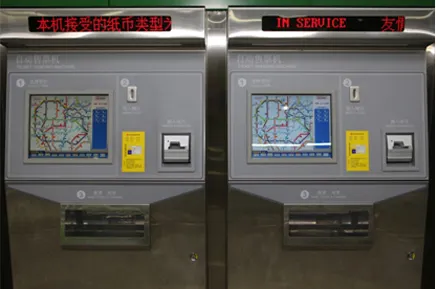 - masukkan wang kertas atau syiling ke dalam mesin (wang kertas satu yuan tidak akan diterima)