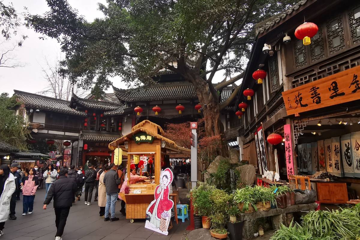 This restored historic block showcases old Chengdu architecture with a modern twist—perfect for shopping, photos, and snacking.