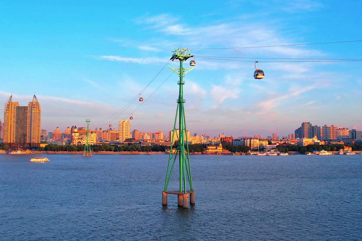 The Songhua River cable car connects Tongjiang Street to the Sun Island area, giving panoramic views of the frozen river and cityscape.