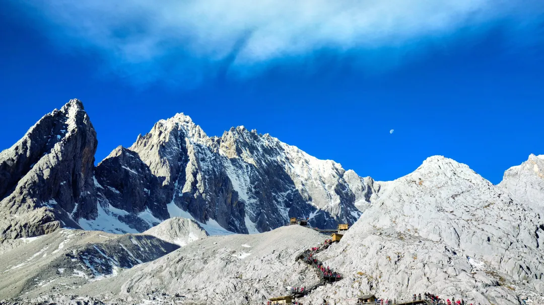 Jade Dragon Snow Mountain, this dramatic 5,596-meter peak dominates the skyline and offers scenic hiking trails, snow-covered platforms, and minority cultural shows at the base.