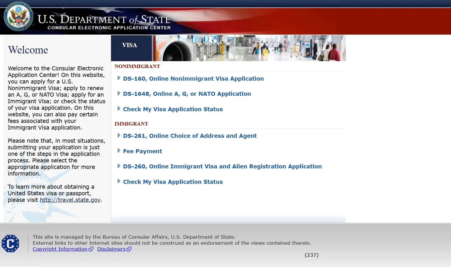 - Untuk mengisi borang permohonan elektronik visa bukan imigran (DS-160), lawam web : https://ceac.state.gov/CEAC/ , anda perlu memberikan maklumat peribadi, termasuk keluarga, pendidikan, pengalaman kerja, rancangan perjalanan, dll. Semasa mengisi, pastikan anda memastikan maklumat itu tepat kerana ia tidak boleh diubah suai selepas penyerahan.