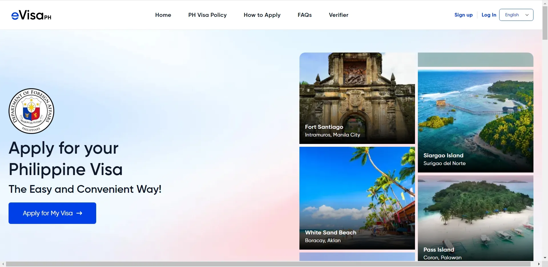 Buat akaun anda untuk memulakan permohonan visa elektronik anda, laman web : https://evisa.gov.ph/