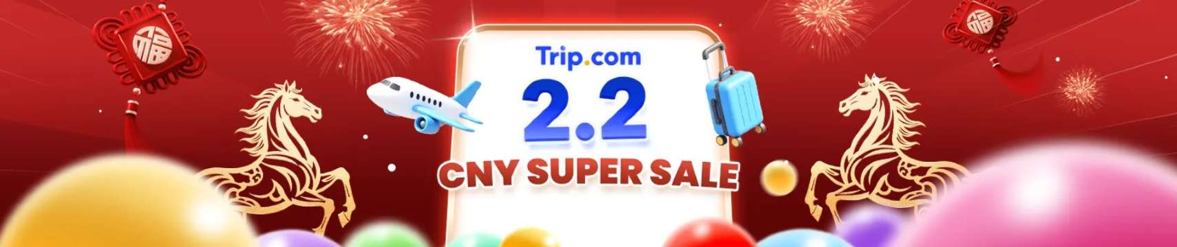 Prosper with Trip's 2026 2.2 CNY Super Sale up to 30% OFF! CNY 2026 falls on 17 Feb (Tuesday), avoid the last-minute panic and plan your journey ahead! Book flights and hotels with RM168 promo code from 2 - 6 February 2026.