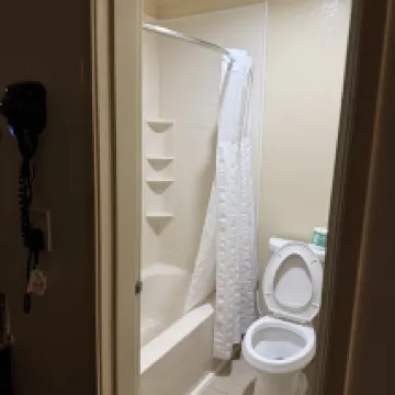 I'll be fair and impartial: Pros: 1. Location: 1.3 kilometers from Disneyland, a 10-minute walk. There aren't any scary areas along the way, so you can walk back and forth without worry. (You still need to be cautious after midnight; be vigilant at any time, in any country. After the Disney fireworks show ends at 10:00 PM, the crowds are incredibly large, so there's absolutely no need to worry. This is just my personal opinion, and I'm not responsible for anything.) 2. Shopping: There are two 7-Elevens nearby, two small supermarkets, and a small shopping mall (the kind Americans love; for Chinese, there aren't many food, drinks, or entertainment options). On the way to Disneyland, there are small shops on the right, with snacks ranging from $5 to $30 (there might be some more expensive ones, but I didn't finish them all). 3. Room: The bed was a moderately firm bed, unlike some super-soft beds in American hotels! The hotel is a motel, and Americans also stay there. The room was clean and had a refrigerator, air conditioning, iron, and a working TV. The hotel also provided a free microwave, a paid washing machine, an ice machine, and a small shopping mall (for water and snacks). Cons: 1. The shower water is too small! 2. The shower water is too small! 3. The shower water is too small!
