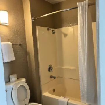 They checked us in in 5 mins which was very speedy and efficient. Not super close to Disney, about 20ish min drive, which isn’t too bad. Parking is free which is a big plus. My biggest issue is that it was super clean, there was chipping paint and stains in the bathtub, but the worst thing was that even though it was a non smoking room it still reeked of cigarettes. But for the price it was pretty good