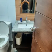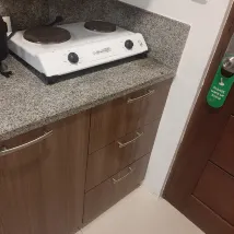 i suggest to improve cleanliness sa room especially sa cr and kitchen cabinets.. yung mga gamit for cooking and dining should be complete before guest enter sana..