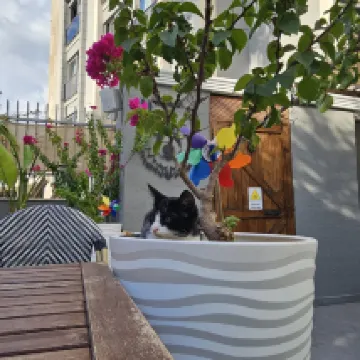 Nighttime check-in is not possible—keep that in mind when planning. We had to wait outside for a couple of hours before the receptionist came and let us into our room. Otherwise, it's a wonderful, clean, very stylish, and cozy aparthotel, with cats serving breakfast.