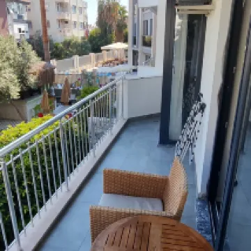 a cozy compact hotel. They managed to place a swimming pool and a small cafe on a small territory, and everything is very beautifully decorated. The staff is polite, speaks English. There is a place to park near the hotel, there are also many shops, a pharmacy, and a cafe. Of the minuses - there is no elevator, and low-flying planes may bother someone (but they did not fly at night, only during the day)