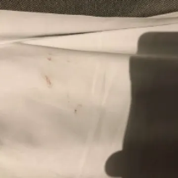 - found dried blood on bed sheets and bed frame in first room, this should never happen