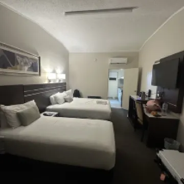 The service was great, and it was so convenient to stay so close to the airport, and free pickup and drop off was the bonus I will definitely stay again next time, the motel is clean and tidy and have big backyard for family to play and enjoy just a little thing that I would like to suggest that if the shower can run a little bit stronger would be great apart from that it was very nice motel for the price. Thank you