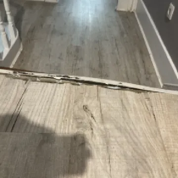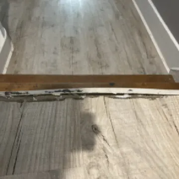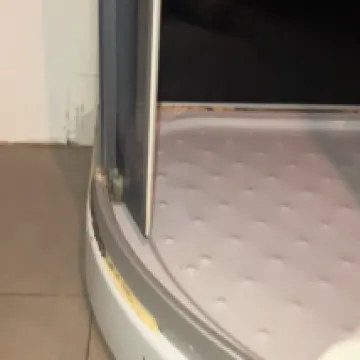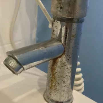 Rust in the sink tab, in the showers, detached or broken shower sliding doors all the water splashed out to the floor. 1 door window missing. Outside in the corridor step frame is rotten and detached creating a trip hazard. Old ripped towels