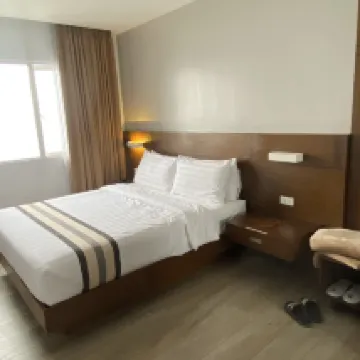 Great service from the hotel staff. They provided ironing amenities and blower upon request. I even called at 5am to ask for toiletries and dental care on our last day and they were able to provide. The premises was clean and the location is out from the city but there’s a lot of taxis passing by so it’s not hard to go to the city. From our room I had a view of the sunrise.