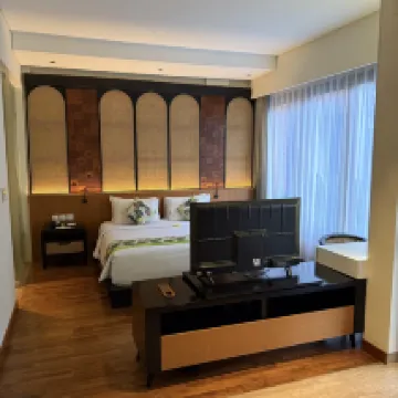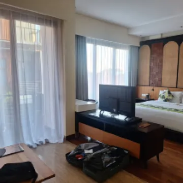 I absolutely loved the hotel! I would like to point out that the staff is extremely friendly and polite, they were always ready to help and even allowed us to leave our suitcases after check-out, since we had a trip to Gili planned. The hotel itself looks very new and modern, the room is beautiful and spacious, equipped with everything you need, there is a spacious balcony. On one of the floors there is a small area with exercise machines. Breakfasts are on the menu and everything we tried - we liked 😍 The sea is also close, there are shops, pharmacies, spas around) to sum up - I recommend the hotel!