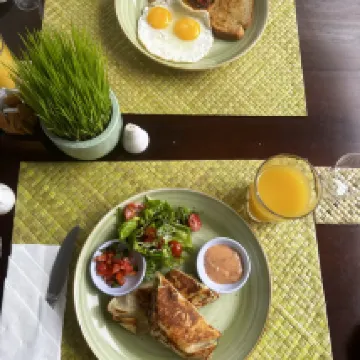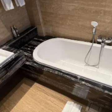 Very good hotel! Service 5+, breakfasts from the menu are incredibly tasty, portions are large. They allowed us to check out late without extra charge and checked us in early. The room was cleaned every day. The rooms are like in the photo. Very spacious. We lived in a suite on the 2nd floor. Always fresh towels, water. Very helpful staff. The hotel is really worth the money. Clean pool with cool water.