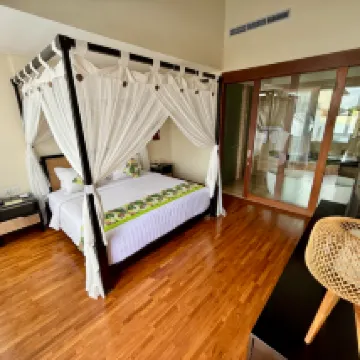 There are no minuses for the hotel itself. The hotel is really cool! We were able to relax there as much as possible. There is a nuance about the location. Batu Belig Street is very traffic jammed. You can stand for an hour before the next turn to Petitengit. And there are traffic jams almost around the clock. Very heavy traffic. The beach nearby is not suitable for swimming. But we did not need it. There are many good establishments around. If you are by car, I do not recommend this area. It was difficult to get to the main highways by bike. But the traffic jams in Canggu are even worse. Count on the fact that from this place to all normal beaches it is at least an hour's drive. We often went to Bukit and stood for 20-30 minutes just on our street.
