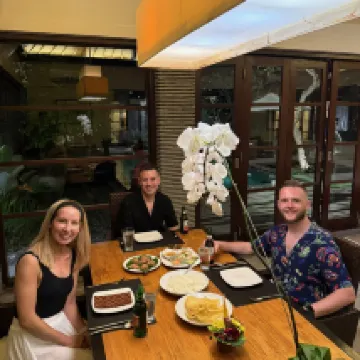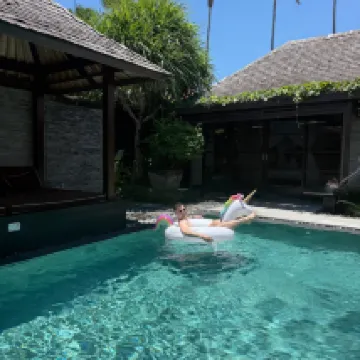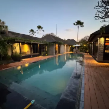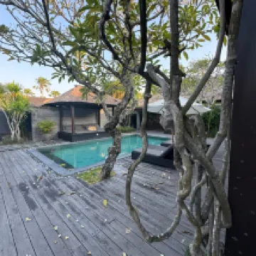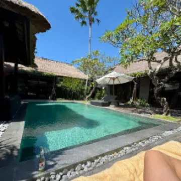 A wonderful place that combines the privacy of a villa and the convenience of a resort. Location is perfect and only 5 mins on a scooter from Seminyak Village. The restaurant is great and the food quality very good. We stayed for 10 days and did not have one bad meal. The staff are beautiful and extremely friendly. In particular Oka and Kutut were just epic and brought a warm friendly smile every day we saw them. The Villas were clean and very spacious with outdoor bathrooms and showers. The air conditioning worked a treat and kept our bedrooms very cool. The gym was very good and perfect size with new equipment. A lovely stay in a beautiful surroundings. The only constructive feedback for management is to look at the decking around the pool and villas as the sun is degrading the timber and so splinters in your feet can be an issue. Also, the level of equipment in the villa kitchens needs to be increased. It felt like the bare minimum. A truly lovely stay though with just the friendliest of staff. Thankyou 🙏😎