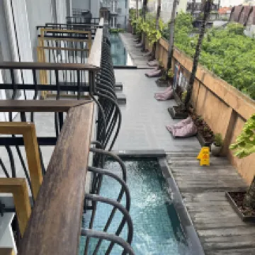 Avoid - pool is just a 50cm deep plunge pool and dirty, in addition since the entire length of the pool has rooms off it, meant that when you are in the water you see into other peoples rooms - some people would leave their dirty shoes outside their bedroom door so you are stuck with the dirt and smell; towels/bedding were disgusting - wholes in the towels and the bedding started to crumble - I stayed in hostels with better bedding!; super noisy - noise from the outside but also since all rooms are connecting rooms, you can hear everything that your neighbors do! During my 9 night stay I heard it all - sex, vomiting, arguments, farting …