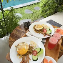 Staying here was a real retreat. The room which has pool access we booked was clean, spacious, intimate bcs there only a few room. Our room was very close to the dining gazebo where there were some plugs so we could working with our laptop with a sight of ricefields. the bathroom has a good warm water shower. I love when the morning sun can penetrate to the room. Nasi goreng and Mie goreng for breakfast are quite tasty. - But sometimes you can hear a gecko at night and unfortunately during our 2n3d stay, there were no one clean and make up our room. Also tissue and water didn't get refilled.