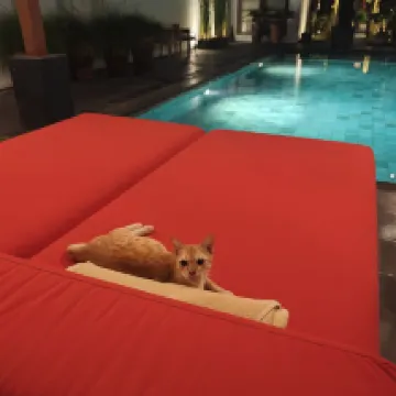The room was clean and spacious, and the garden pool was well-lit. It was a very comfortable stay.
