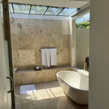 The room is large and comfortable, the courtyard is beautiful, and it makes people feel very relaxed. The whole park has a unique and charming scenery. The service of the staff is very good. They help children to inflate the swimming rings, and they will patiently help to comfort the children when they cry. There are delicious welcome fruits when you come, and greeting cards and chocolates are sent for Christmas, which is very thoughtful. The park has its own restaurant, which is on the list of gourmet food. The price is not cheap, but I personally think Bali ranks first! I will want to stay here againโบ๏ธ