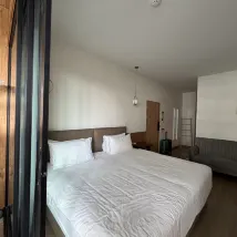 The room was spacious with a comfortable bed and cool air conditioning. The bathroom was clean, featuring a large bathtub and full amenities. The location was great and convenient for getting around, though the room wasn't very soundproof. We arrived quite late and had to call the staff for the entry code. The host was lovely and took excellent care of us.