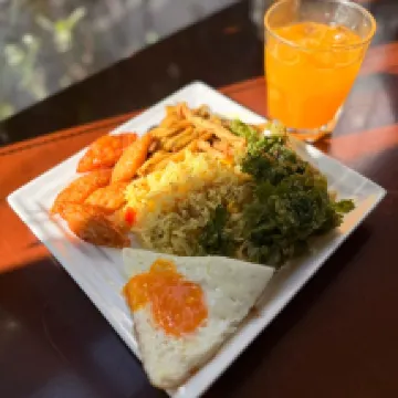 The 24-hour buggy service was extremely convenient, and the breakfast offered a wide variety of dishes to choose from. The complimentary supper was a wonderful added benefit.