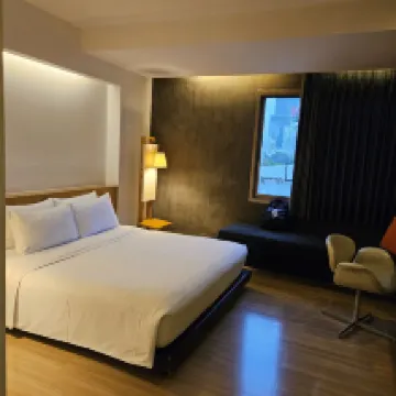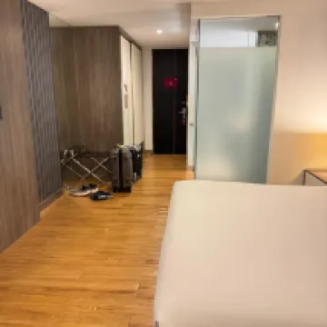 Pros: Good location. Near BTS. Can walk to Yunomori Onsen or Healthland at Saint Louis station. Supermarket, cake shops, pharmacy at the hotel ground floor. 24hr McDonalds at Chong Nonsi station. Very big and deep and clean swimming pool with towel provided. A big room with wooden floor. Very dark for sleeping after switch off all lights.