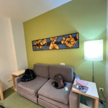 The room is clean and tidy, with a reception area, which is relatively large. The location is good, easy to get in and out, quiet in a busy area, Chinese service is available at the front desk, and Miss Chen is very enthusiastic and kind. I will recommend this hotel to my friends, and I will come again 👍👍👍🌹🌹🌹