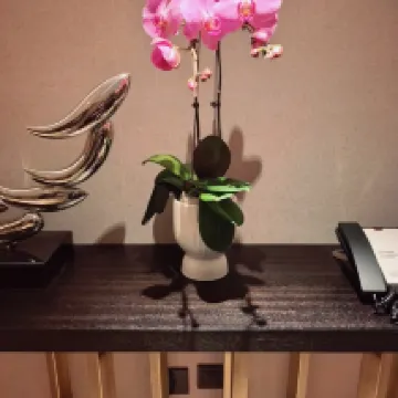 **Environment:** Stepping through the revolving doors into the lobby, the opulent purple and red orchids immediately uplift your spirits. The spacious and bright lobby offers a luxurious sense of space, with meticulous design details that make you feel utterly relaxed.