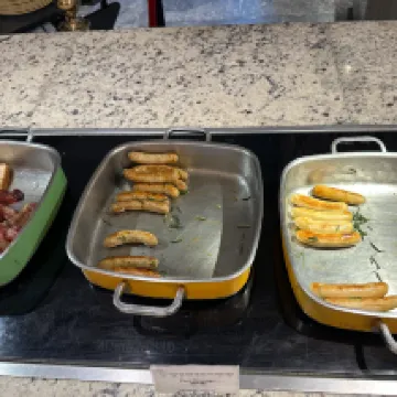 4. Breakfast runs until 10:30 AM, and the layout is reasonable. I arrived at 9:30 AM, and there was hardly anyone there. However, the selection of dishes was quite limited. What's going on with Marriott hotels these days?