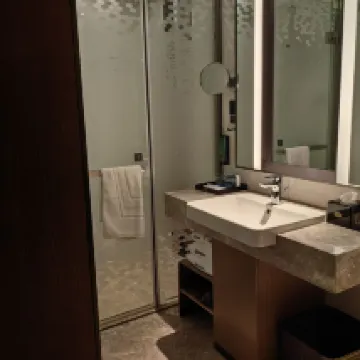 Our stay was absolutely fantastic, a perfect experience! A huge thank you to Summer, Coco, and Lucky at the front desk for their thoughtful fruit delivery. The room was incredibly spacious and clean, and the breakfast was a delicious mix of Western and Chinese options with a great variety. The room amenities were all top-notch, including a large floor-to-ceiling window. Plus, they have a robot for external deliveries, and there's a shuttle service to Universal Studios that you can book at check-in. Highly recommended!
