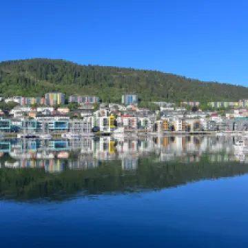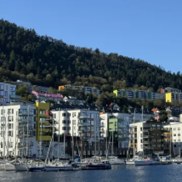 The hotel is right on the waterfront, offering lovely views. Since Bergen isn't a huge city, it's conveniently located for all the major attractions. The train station, Funicular, and port are all just about a 20-minute walk away.