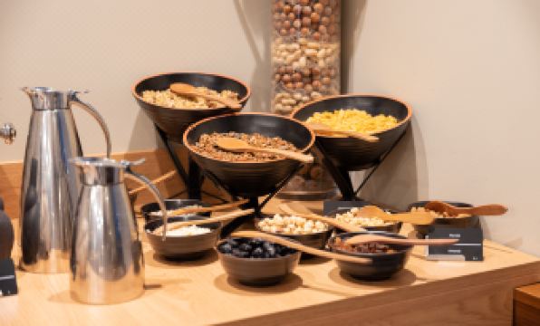 The breakfast was truly the highlight of our stay. The buffet spread was extensive, with something for everyone. From a cereal and nuts bar to a coffee station offering filter coffee and a variety of fresh juices, the options were endless. There was a cheese and meat section, a wonderful selection of breads, omelettes, sausages, fried eggs, bacon, chia pudding, fresh fruits, and even lemon-infused water. Everything was absolutely delicious—easily the best buffet breakfast we've ever had. Typically, buffet breakfasts can be a bit underwhelming, but this one was in a league of its own.
