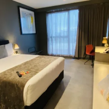 We had such a fun day by the rooftop pool all day! Kids loved it. Reception was helpful and friendly. Room was clean and the beds were comfy, good size with 2 queen beds. Nice linen and doonas on the beds.