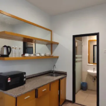 Upon entering the room, there's a musty smell, the walls in the bathroom is very much molded and there's a stench when showering. Tabletop all is not wiped and the sofa dont feel clean, like century old sofa. On a side note, there's a kitchen cabinet where you can microwave your food and plates to use. I dont see the detergent though. There's tv but no remote. The bedroom is spacious and pretty clean.. but can be quite stuffy and hot at night as the layout is pretty weird.
