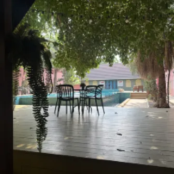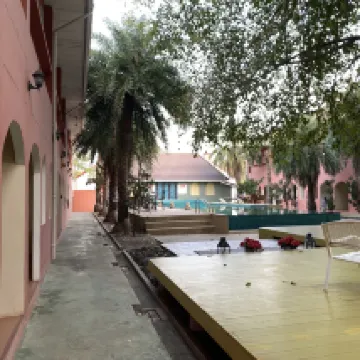 Good, next to the road, very easy to find things to eat, there is a swimming pool near the room, comfortable, clean room, ok staff, mattress is a bit high. I like the building in front. It takes good photos.