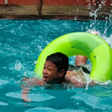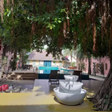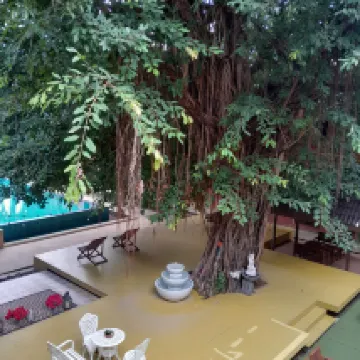 The giant tree located at the entrance to the swimming pool is fantastically beautiful.