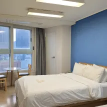 The lady at the front desk was incredibly kind! It's very close to the subway, and getting to Gimpo International Airport takes only about half an hour by foot and subway. There's also a 24-hour supermarket right across the street; even though you can't get tax refunds there, it's still great for convenient shopping. The price is affordable, and you definitely won't get bored with so many options nearby: an outlet mall, Daiso, plenty of dining choices, pharmacies, and a coin laundry.