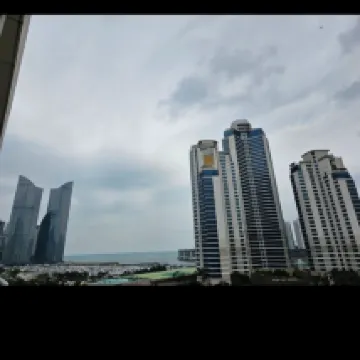 It looks like a youth training center, but I think it would be nice to visit with friends. It's a shame that the facility is a bit old, but it's well maintained, has a view of the sea at Haeundae Marine City, and has a balcony, which was nice.